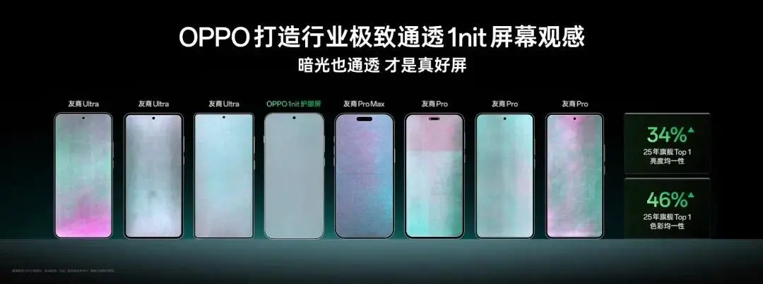 可以看到,OPPO Find X9不仅屏幕亮度比友商暗,色彩和均匀性也拉开了明显差距。