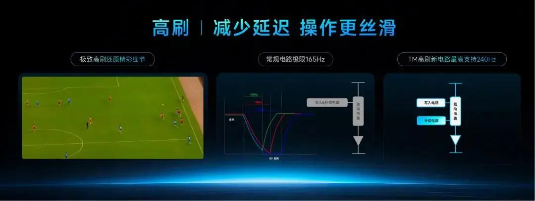 除了支持比较常规的120Hz高刷,天马天工屏在常规电路下能做到165Hz,说白了是可量产的,我们能买到且享受到。