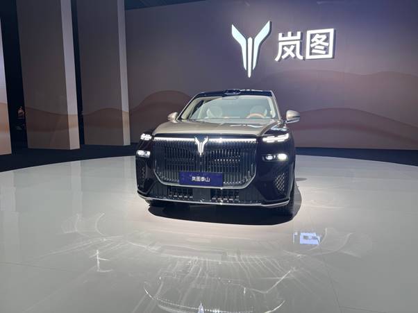 外观方面,新车采用了“大境天成”设计理念,整体看上去非常霸气。车头中间部分为大尺寸的多条幅镀铬中网,大灯组则采用分体式设计,极具冲击力。此外,岚图泰山还提供双拼色车身供选择。