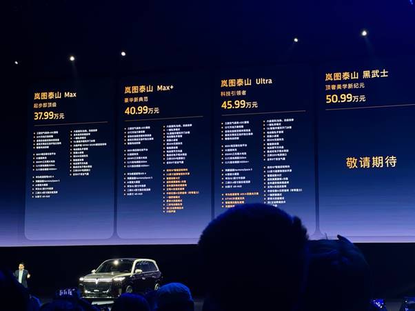 【TechWeb】11月18日消息,岚图汽车全新旗舰SUV车型岚图泰山正式上市,售价37.99-50.99万元。同时官方还公布了新车上市首销期权益:限时可享价值4.8万元权益,包括5000元定金抵扣8000元车款;首任车主终身免费三电质保;豪华配置升级等五重购车权益。