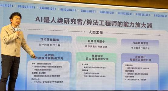 现场,来自自汽车研发、前沿科研、防灾减灾科研领域的合作伙伴展示了百度伐谋如何突破“人类经验”,帮助他们在各自研究领域寻找“全局最优解”的故事。