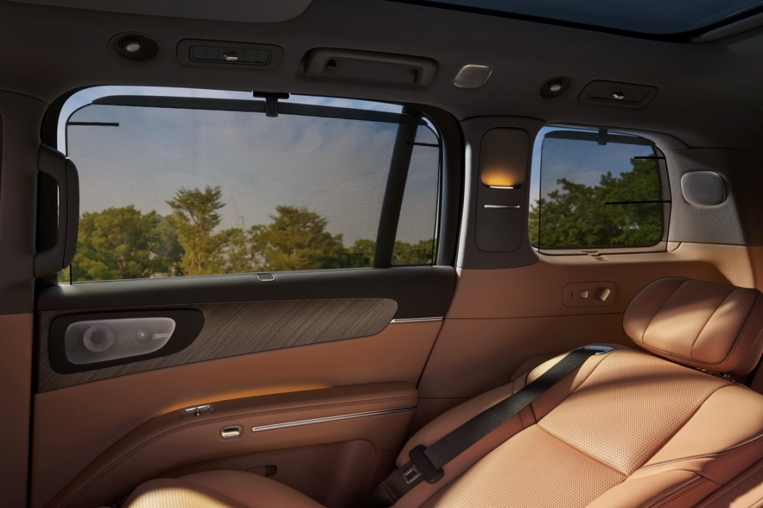三排座椅配备双扶手、一键电动折叠功能及加热系统,靠背支持131°无级调节与双速调节,彻底告别“第三排小板凳”痛点;1240c㎡三排全景视窗搭配遮蔽率超91%的二/三排遮阳帘,既保证通透视野,又能有效防晒隐私。