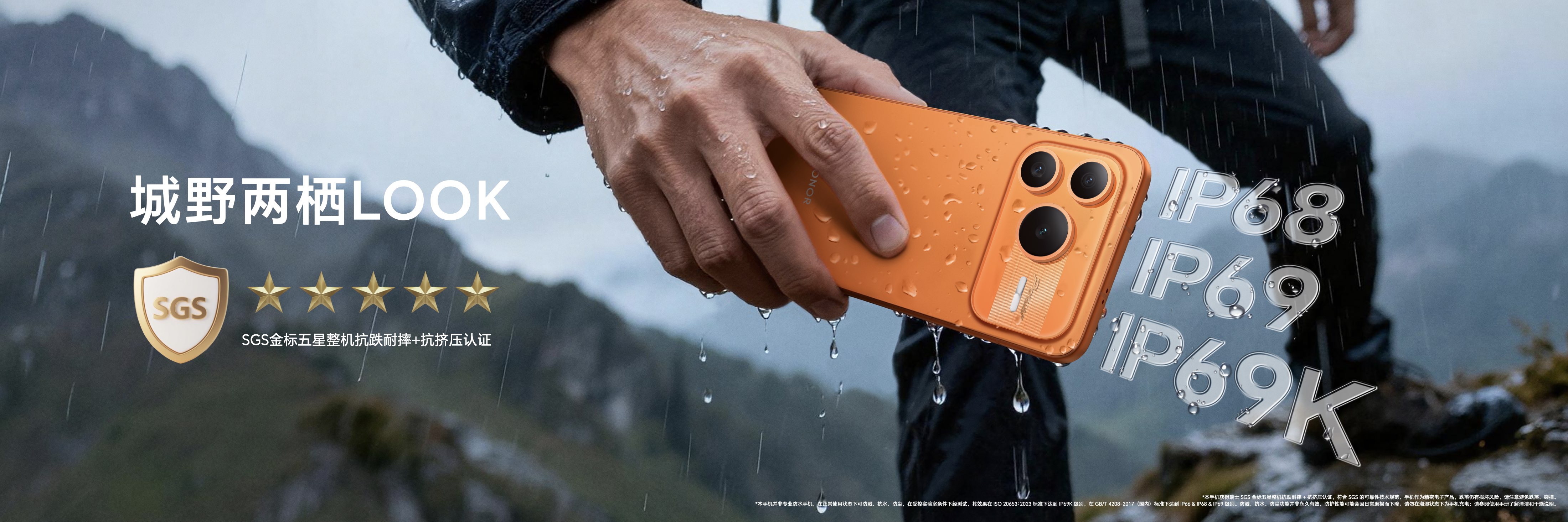 荣耀Power2打造了强大的机身可靠性,机身中框采用四角榫卯卸力设计,抗摔能力提升25%,抗弯能力提升22%,整机通过SGS金标五星整机抗跌耐摔+抗挤压认证。同时,其还具备IP68+IP69+IP69K满级防尘防水,支持超高温、超时长、任意种类防水以及10000+次反复入水无忧四重防护,即使在极端户外环境也能轻松应对。