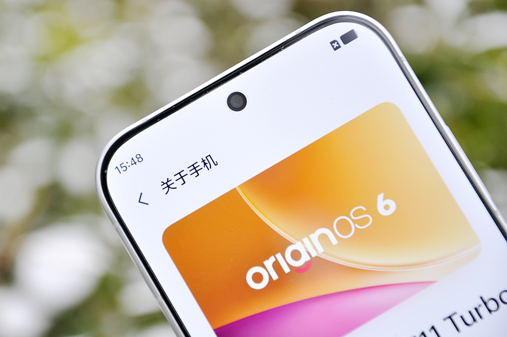 机身正面配备 6.59 英寸黄金中屏,四边等宽的窄边框带来极高屏占比,视觉上简洁大气。上手握持时大R角与手掌自然贴合,有效缓解了直屏手机常见的硌手问题,单手握持毫无压力,不得不说对于喜欢中屏尺寸的用户来说堪称完美。