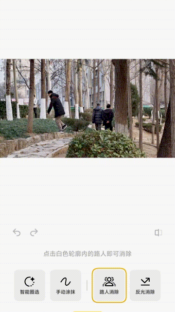 值得一提的是,通过AI能力的加持,这款手机也同样具有丰富的AI图像功能,比如路人消除等等,一键就能实现照片编辑,大幅度提升了成像后期自定义宽度。