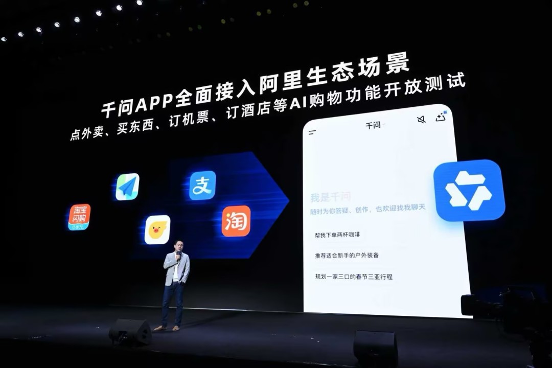 1月15日,阿里旗下千问APP官宣重磅升级,全面接入淘宝、支付宝、淘宝闪购、飞猪、高德等阿里生态业务,首次实现点外卖、买东西、订机票等AI购物功能。