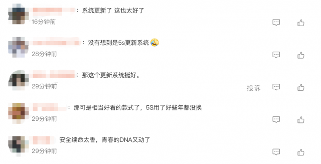 对此,不少网友表示,“iPhone 5s还能系统更新?爷青回!”“这不是普通的功能更新,而是一次关键的’续命’操作!”“安全续命太香,青春的DNA又动了”……