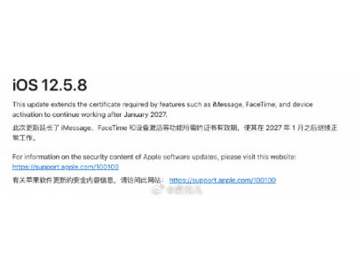苹果大规模更新iOS 12至26 发布近13年的iPhone 5S迎来更新