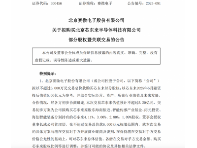 赛微电子拟购买芯东来部分股权 后者专注光刻机整机领域