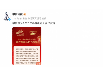 官宣 宇树科技成为2026年春晚机器人合作伙伴