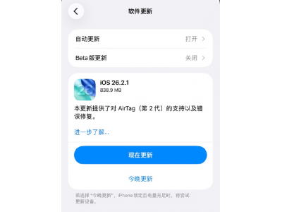 苹果发布iOS 26.2.1正式版 适配AirTag 2