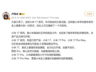 高通发布第五代骁龙8至尊版,雷军宣布小米17系列今晚首发搭载