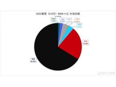 6-8月8000元以上手机市场份额揭晓:华为占比超2成